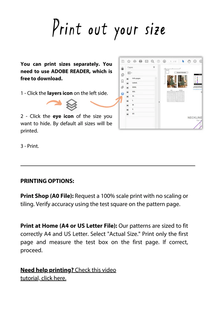 ✔️ Layered patterns: Print only the size you need and save ink!
